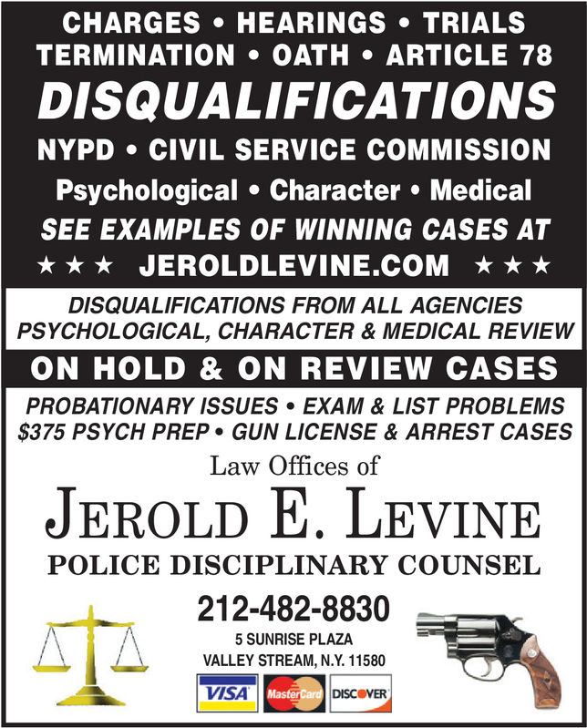 I got a disqualification from NYPD and he turn it around fast. He knows the system and how NYPD works. He ask a lot of questions to find out my situation so he really knows the case. If you get in trouble call him. --- B.R.